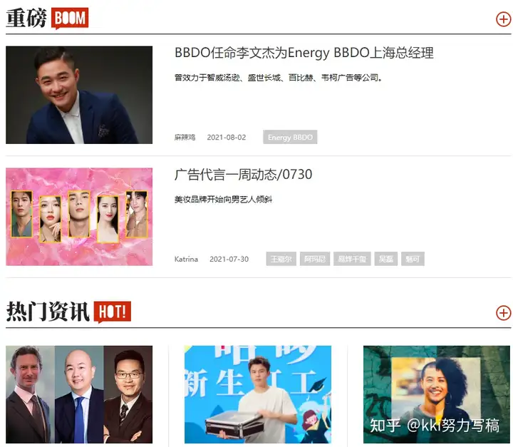 06 数英网http://www.digitaling.com数英网是一个汇聚众多网络营销、新媒体、文案、电视节目芒罗的垂直网络营销互动媒体网络平台,涵盖时下新一代鲜、最炙手可热的文章以及项目,包括电视节目广告、文案、创意设计相关的各种事例,内容非常丰富,基本可以说是电视节目广告文案人的后花园了。