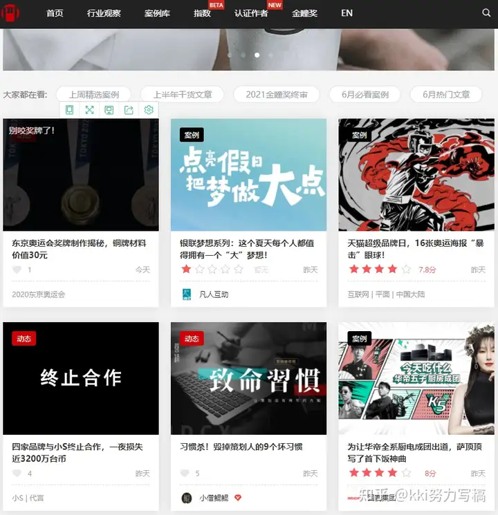 我比较讨厌其中两个栏目,一个是“项目”板块,收录大量新一代电视节目广告网络营销事例还有一个就是“数英亚洲地区奖库”,汇聚了海内外电视节目广告网络营销、创意设计设计应用领域的知名奖项进入每个奖项的主页,你就可以看到该奖历年的获奖事例和相关资料库。