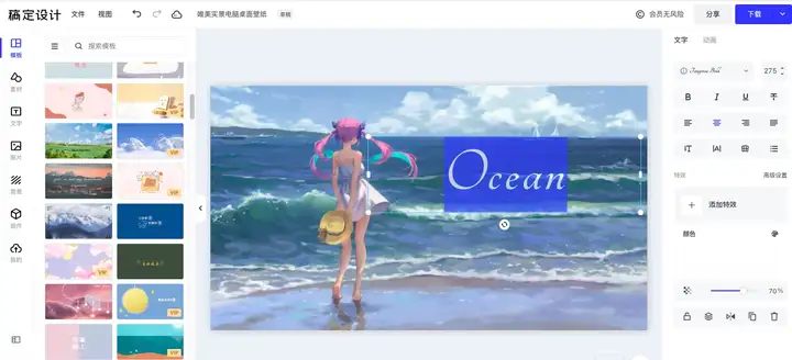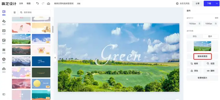 虽然没ACG、格斗游戏类背景,但它的一大价值在于,让一般的4K调色板变成你的专属。挑个他们喜欢的文案调色板,进入后是编辑器,双击背景图,或点背景图并选右侧的“替换图片”,换个图,专属调色板就来了