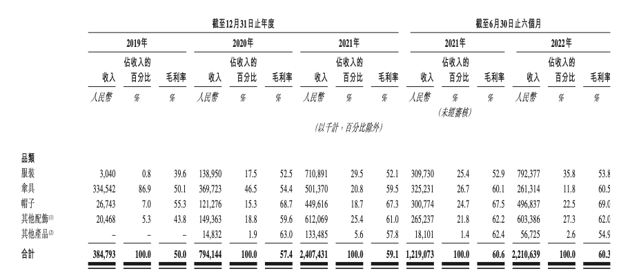 2019年蕉下39.6%的服装毛利率已经不低了,2022年,服装毛利率已经上涨到53.8%了,综合所有产品产品种类看,毛利率更是达到了60.3%而蕉下还有人尽皆知的轻资产模式,对部分消费需求者来说,代工厂生产的售价五六十一件的防晒霜服和贴牌之后两三百的防晒霜服并无区别。