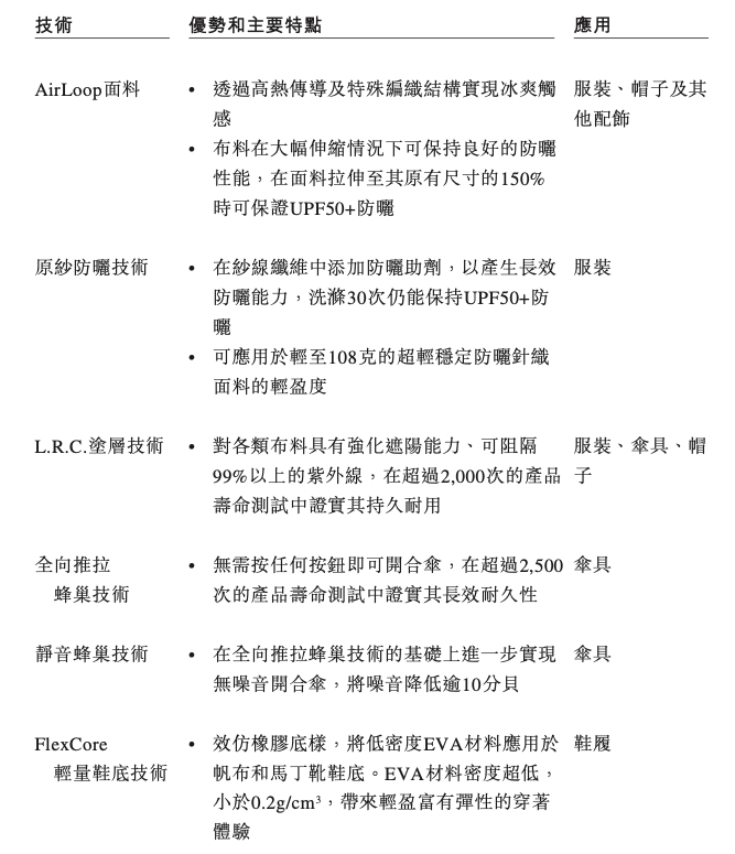 并且最主要的专利主要是伞具的专利,而比例最大的服装相关的也偏少另默默地,几乎所有的防晒霜衣国际品牌都拿科技做卖点,蕉下的“科技”难免泯然众人。