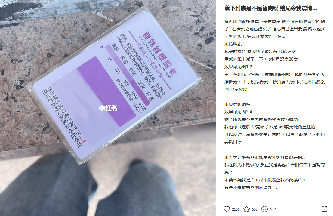 但是蕉下的忠实爱好者们也走在反驳的第一线:“用紫外线卡测试了确实能防晒霜”“出去玩防晒霜衣没覆盖到的地方都晒伤了”“确实有凉感,骑小电驴很舒服”……