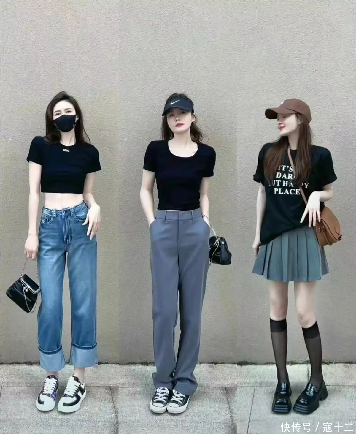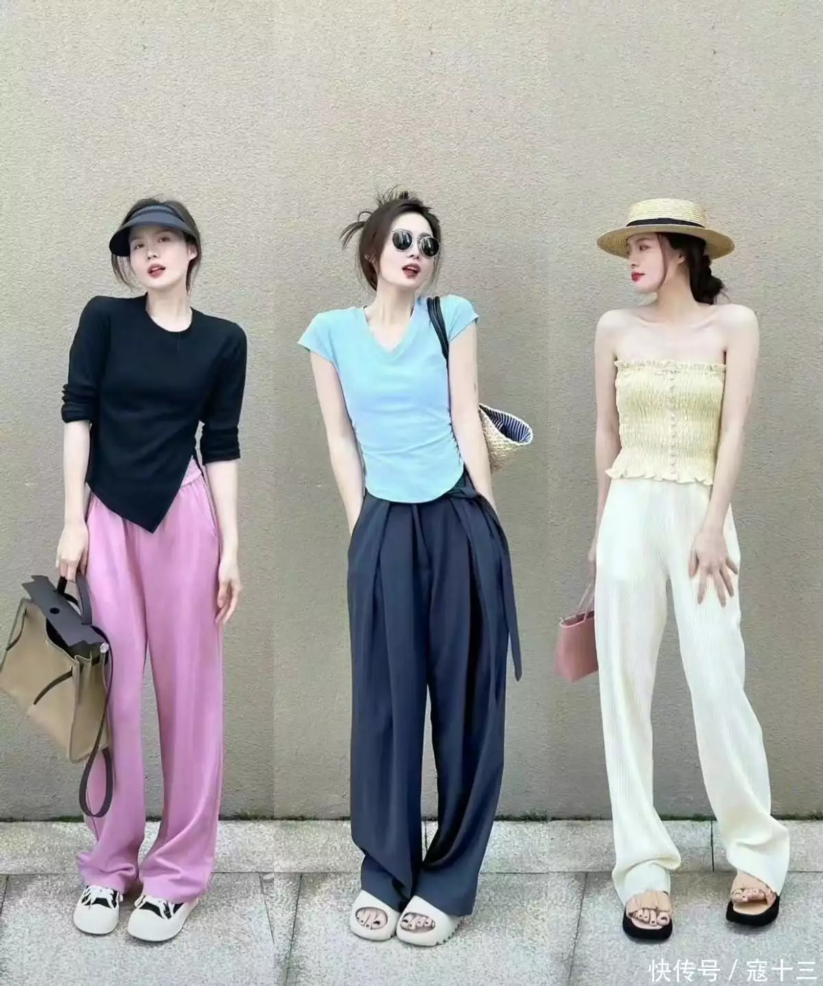 2、TT恤配饰+紫果裤配饰夏天真的很需要这样一件正肩的TT恤,V领的设计感,显高也略显几分小火辣,配搭两条高腰的紫果裤,宽松又很消闲,将单纯的鞋子穿出高级感和流行风尚感,是真的很凸显魅力宝蓝色的TT恤配上高腰的消闲裤,听觉上显得身型更为苗条,尤其凸显小细腰,很随性、慵懒,而且也让自己觉得很舒服,高高瘦瘦的女孩子真的能尝试这一类配搭。