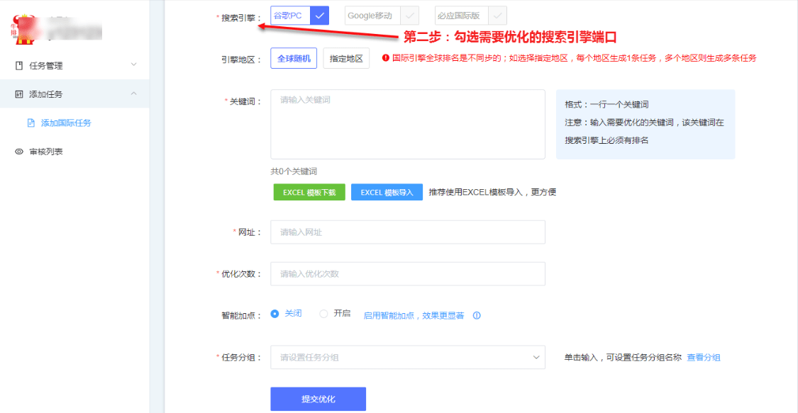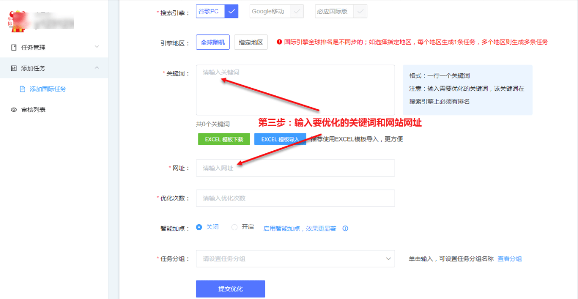 (3)在关键字框和邮箱左下方输出你要的关键字和你的中文网站;