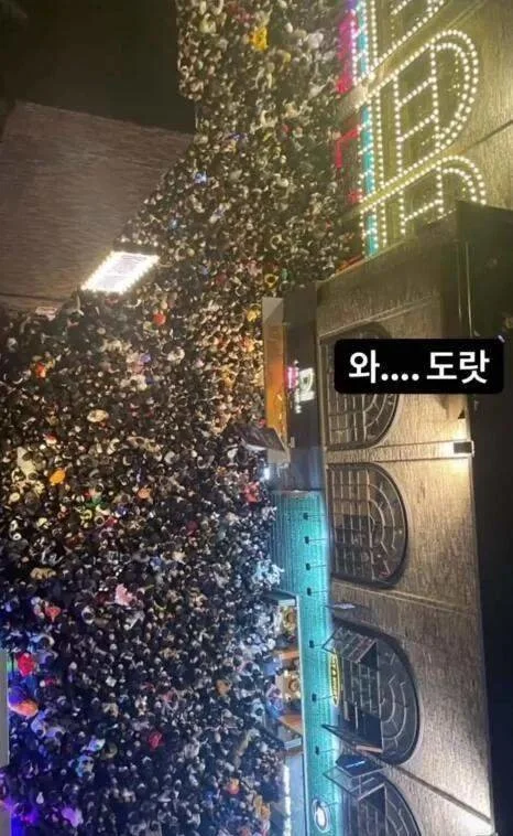 有一位南韩男网红,也在拥挤的人群中一动不能动。此时,他开直播,向外界播报梨泰院冲撞当晚的情况。他身高较高,所以可以有更多的呼吸空气的空间,但是挤在他身边矮小的女生在人群里不断发出悲鸣和惨叫。