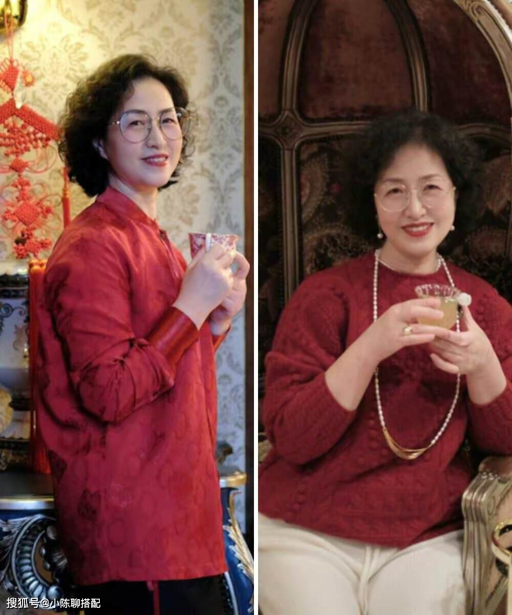 除此之外,鲜艳色也可以和基础色相搭,复古又流行风尚,经典的搭配方式比如说红配黑,红配白等,无论谁作为主色调,又或者五五分比例,都能很好的彰显色彩搭配的美学花色,尤其是蕾丝,也是那位北京外公钟爱的配饰,不过,蕾丝也是中国大妈式穿搭的雷区之一,大面积+亮色更容易显得老土。