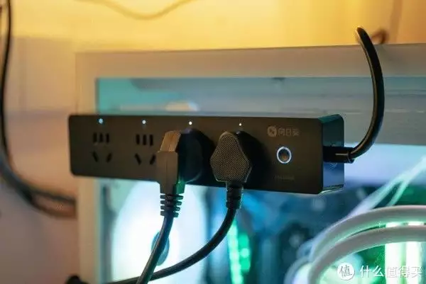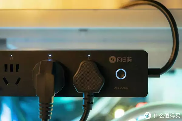 最右边的是插线板的总控制开关,外圈有一个环型指示灯,日常可透过不同色调、灯光状态来直观了解各插座的实时工作状态,这还挺周到的。