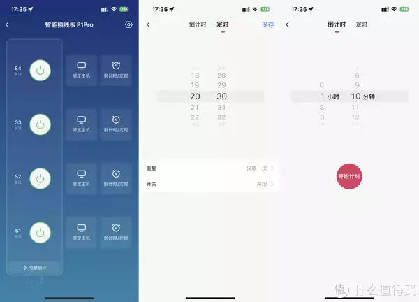 四个插孔从右到左分别命名为S1至S4,主要是为了方便采用手机对其进行单独控制。是的,你没看错,每个插孔都能独立控制,我能打开或关闭任意一个插孔,还能倒计时/定时开启或关闭,这样就能在我出门前让家用电器自动关机,或者在你下班前让家里的空调提前开启,提供一个舒适的环境。铃兰P1 Pro还能配合铃兰APP的情景模式采用,这样他们就能将多个操作设置在一个情景中,一键启动,非常方便。