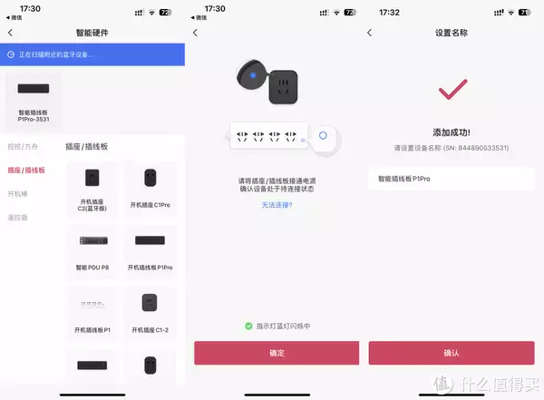 其实很简单,只需要下载铃兰APP,登录账号,然后在APP里添加铃兰P1 Pro就能了。添加的方法也很简单,是在“设备”选项中,点击左上角的“+”,然后选择“添加智能硬件”,再在列表中选择“插座/插线板”,找到铃兰P1 Pro,按照提示操作就行。