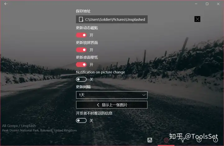 你就算真的现阶段调色板不讨厌,能间接点选应用软件的发送中上方,方可换调色板这里头的数人失调色板都是源自调色板中文网站 unsplash 能任一转换你要很讨厌这张调色板能点选左上方的留存按键(即第二个按键),预设留存边线C:\Users\Soldier\Pictures\Unsplashed。有甚用软