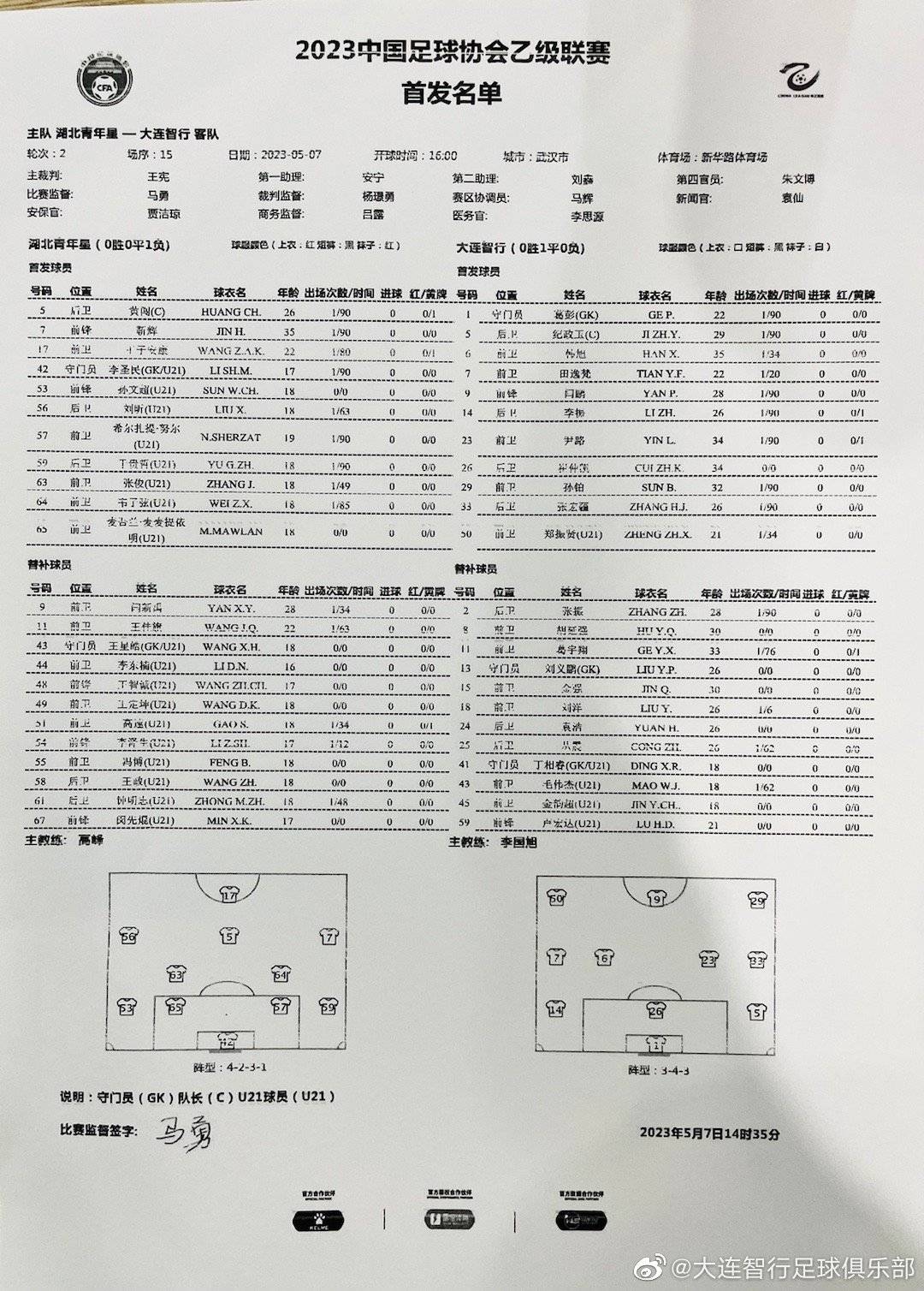 猛将李国旭对首秀班底做出了较大调整,上这场右后卫上场表现稳定的小将罗足庆和小将田逸梵,以及郑振贤、崔仲凯等先发出战。脚踝在身的四川全兴坐上右后卫席。