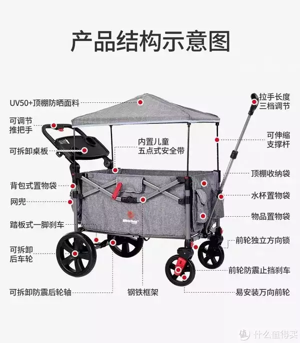 手把推拉兼备,车厢可坐两个宝宝,都带安全带扣面料成分符合安全标准,耗油15.2kg开拓功能:有遮阳棚,车后有吊挂袋,魔术搭扣,支持车门口板开拓黄疸型:这款小车只能说是长得像Menat的婴儿车,它的钢架只有50kg,如果日常郊游用来放装备的话也放不了多少,开拓性太差。
