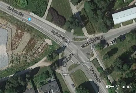 应用软件中丰富的示例下面我简单如是说两个我曾经做过的道路交叉口的示例示例描述:创建两个基于卫星图片的道路交叉口数学模型两条双向单车道,Tapiolavagen路边有两个公共汽车站,Menninkaisentie路边有两个有五个停车位的小型停车场。