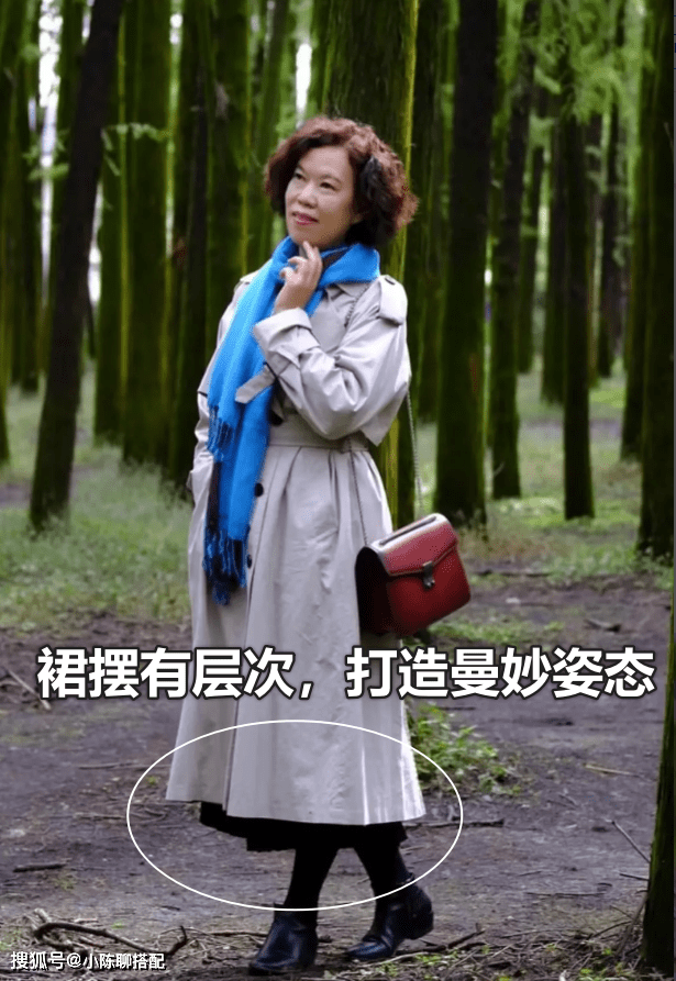 女性迷人的地方不仅在于能直接展示玲珑曲线,更典雅的男人还能让风韵由内而外地散发出来,后者更适合成熟沉稳的大龄女性在需要叠穿的时候,男人都知道短外套能用来提高腰线,拉伸腿长,而长外套如风衣、大衣就比较常规了,这个时候我们能像蒹葭这身外型一样,让外套和内搭的裙摆组合起来,制造出层次感,安静时显得娴静温柔,走起路来便转换成步步生花的曼妙姿态。