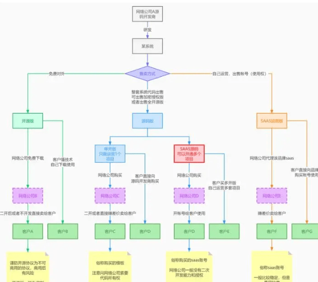 ② 商用单开源码,是正常用来贩售的能商用的控制系统源码,比如织梦建站控制系统、ecshop、shopex等,市面上也非常多这样的平台和产品,此种控制系统最好直接找到源头的开发者买回,不然做大后容易吃官司③ SAAS运营版,那个做网络公司的肯定都有接触过,商家也能接触到,比如像微盟、有赞、小鹅通、墨刀、蓝湖等都是此种,你买回的只是他们的一个帐号,只有使用权,数据和源码都不会给你的。