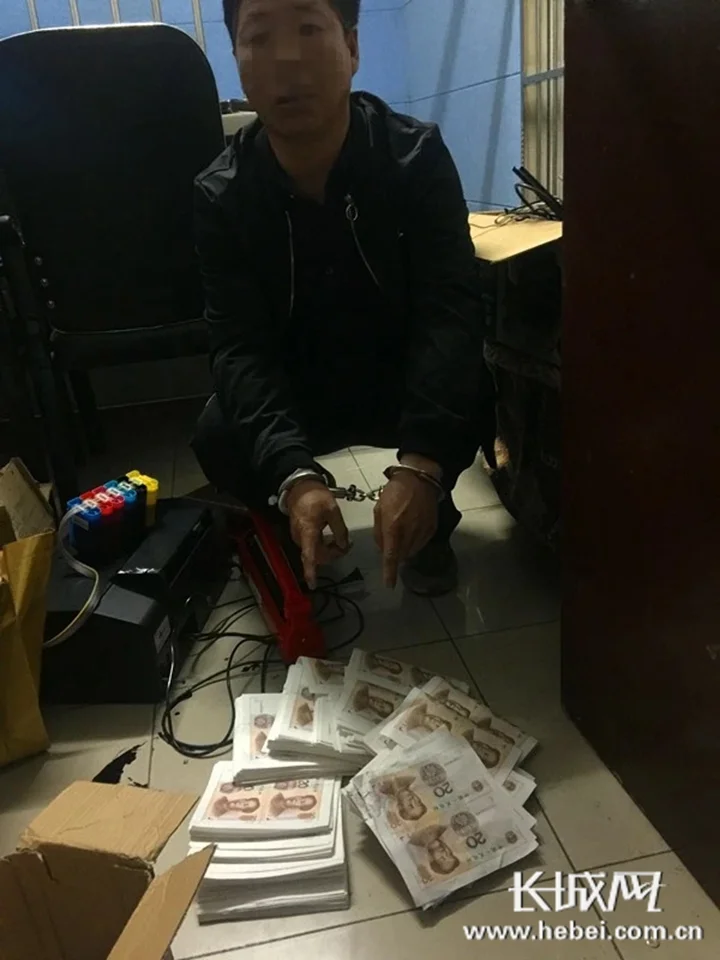 在其租住的房屋内,一台印表机正在运转,面值20元的“人民币”新鲜出炉,还散着纸张味!现场打掉伪造货币用的10元、20元、50元、100元面值人民币电子模板多套、笔记本电脑两台、彩色喷墨印表机3台、伪造荷花型水公章两枚、伪造“20”字样公章4枚,带条码线打钱纸叶祖奇、低温铜版颜料墨水20瓶......
