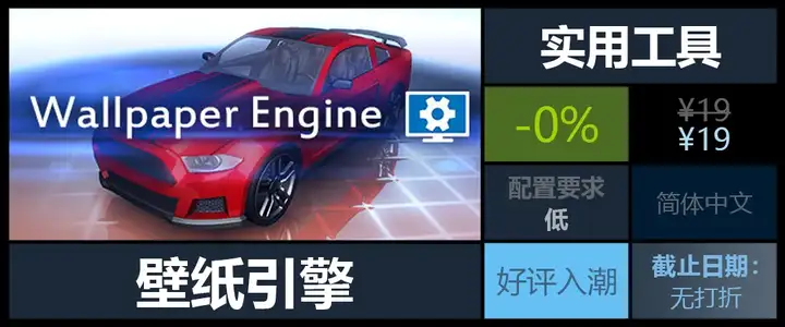 这玩意儿一不打折二并非格斗游戏我为啥放第一个呢,就凭它34万评价,97%IMDb而且还十分实用这是一款动态壁纸软件,自带简体中文无需任何设置,在安装后点上开机启动即可,然后你要做的就是挑选你喜欢的动态壁纸然后下载就完事。