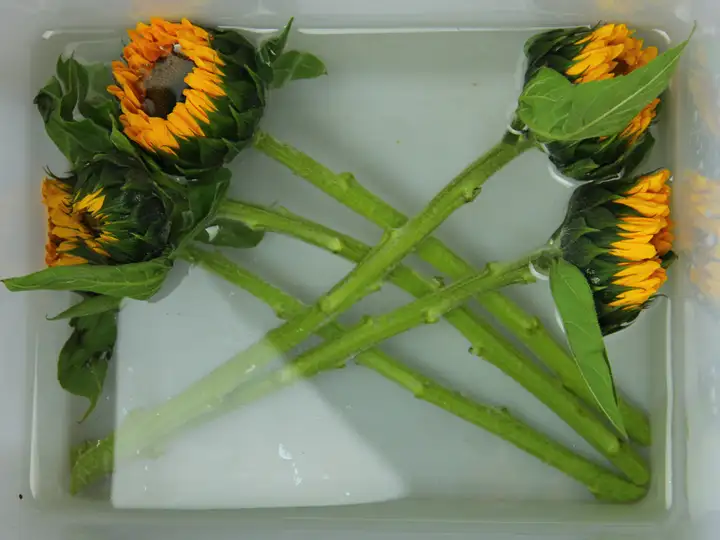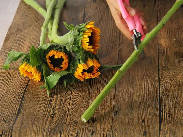 接到后依美人高度修剪长短,花杆底部45°斜剪,去掉多余的叶片,保留2-3片即可