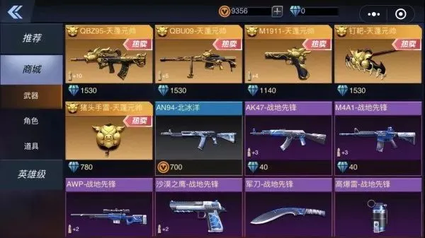 除技术之外,一把好枪也是格斗游戏中取得胜利的关键所在,玩家能在商城中选购枪支弹药,琳琅满目商品种类、各色皮肤样式,已经开始体现出平民和大R的区别了。
