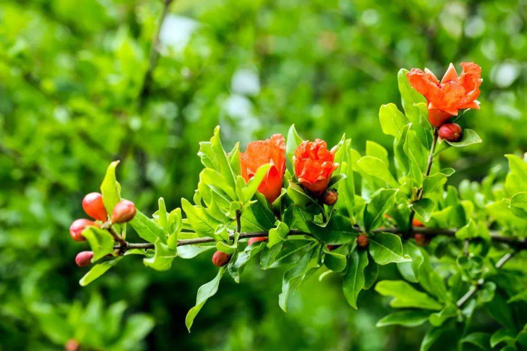 正沉浸在朝霞的美丽中,忽然间传来飞鸟受惊的鸣叫声,露水顺着树梢,滴落在了红艳的石榴花上,如同一个猝不及防的亲吻,榴花羞得更红了!绿荫已成,这里便是鱼儿的天堂,鸟叫声比春日里更繁了水亭凉气多,闲棹晚来过涧影见松竹,潭香闻芰荷。