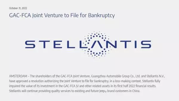 同日,stellantis集团公司也在其官方网站上正式宣布了这一消息自此,成立于2010年3月9日的本田纳迪尔正式成为了历史stellantis集团公司则表示,其已在2022年上半年的财务业绩中,对其在本田纳迪尔的投资和其他有关资产计入了全面的减值支出,集团公司将继续为中国现有和未来的jeep品牌顾客提供为民服务。